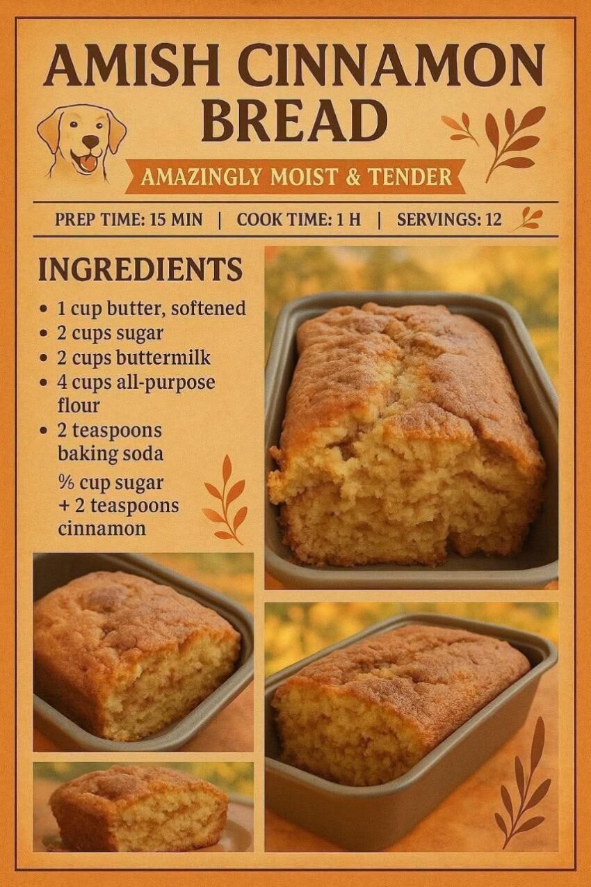 Here’s a classic Amish Cinnamon Bread—soft, fluffy, and filled with a sweet cinnamon swirl 🍞✨