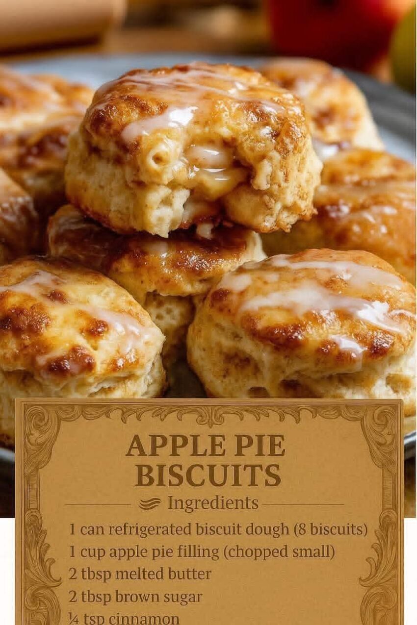 Oh yes! 🍏🥐 Apple Pie Biscuits—soft, flaky biscuits stuffed with sweet, cinnamon-spiced apples. They’re like mini apple pies that are quick to make and perfect for breakfast or dessert. Here’s a recipe: