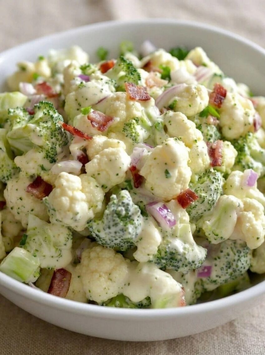 Here’s a fresh, crunchy Broccoli Cauliflower Salad recipe that’s tangy, creamy, and perfect for potlucks or weeknight sides 🥦🌸