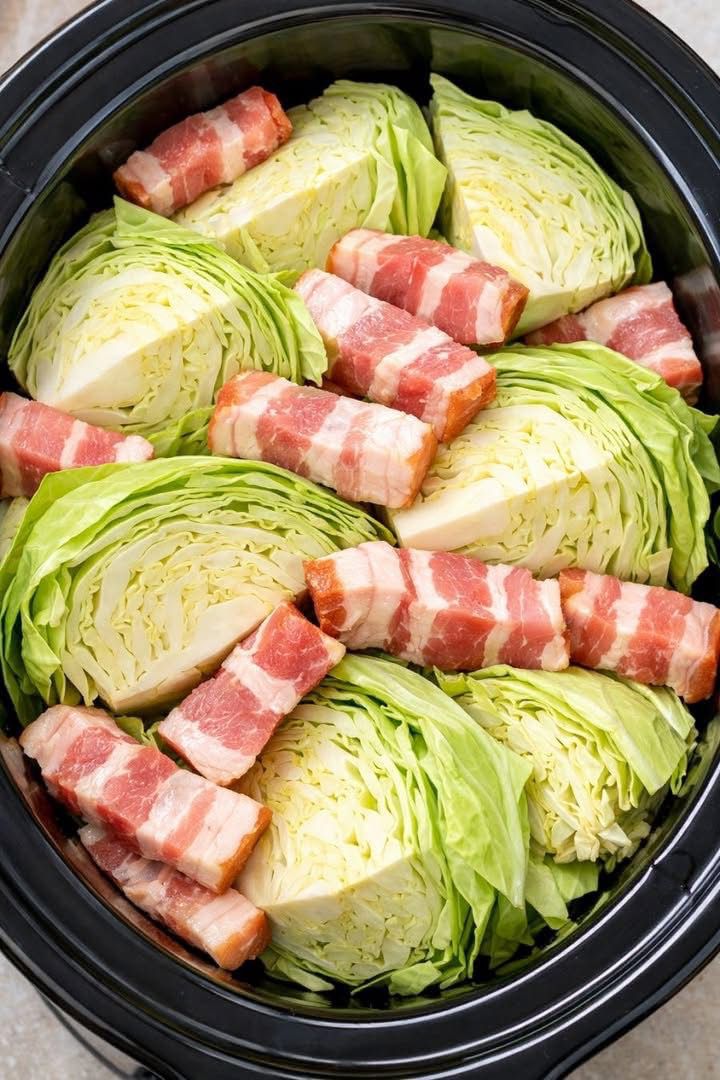 Cabbage and Bacon Rolls in a Slow Cooker are a hearty comfort dish where tender cabbage leaves are wrapped around a savory filling and slowly cooked until soft and flavorful. The bacon adds a smoky richness that makes the dish extra satisfying. 🥬🥓