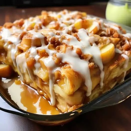 Here’s a Caramel Apple Cinnamon Roll Lasagna—warm, gooey, and perfect for dessert or brunch 🍎🍯