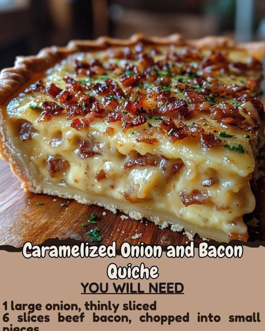 Ahhh yes 😋🥓🧅 — Caramelized Onion and Beef Bacon Quiche is rich, savory, and perfect for breakfast, brunch, or a light dinner. Flaky crust, sweet caramelized onions, smoky bacon, and creamy custard—absolute comfort on a plate.