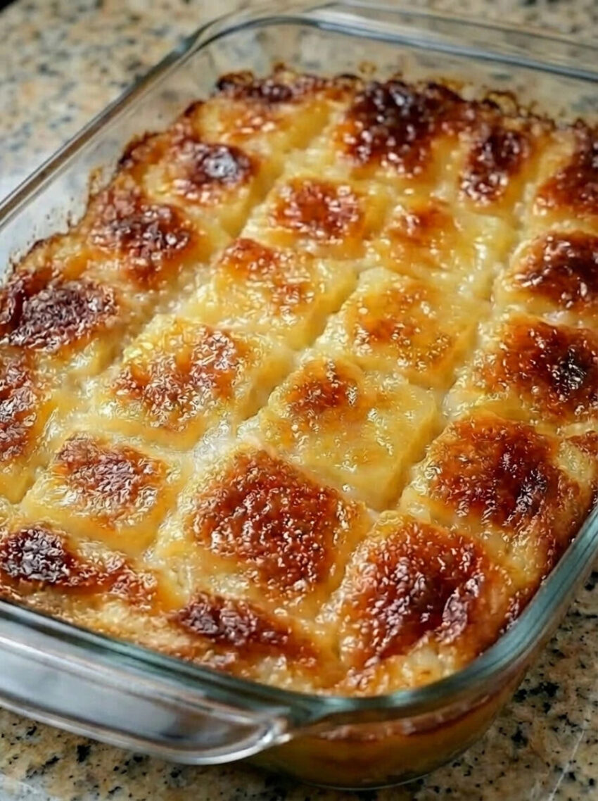 Here’s a classic Filipino-style cassava cake—rich, chewy, and lightly caramelized on top 🍰