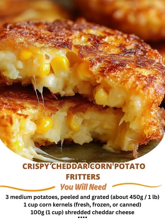 Crispy on the outside, soft and cheesy inside—Cheesy Corn Fritters 🌽🧀