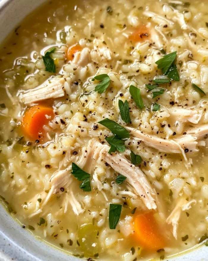 Here’s a classic Chicken and Rice Soup—warm, comforting, and simple 🍲