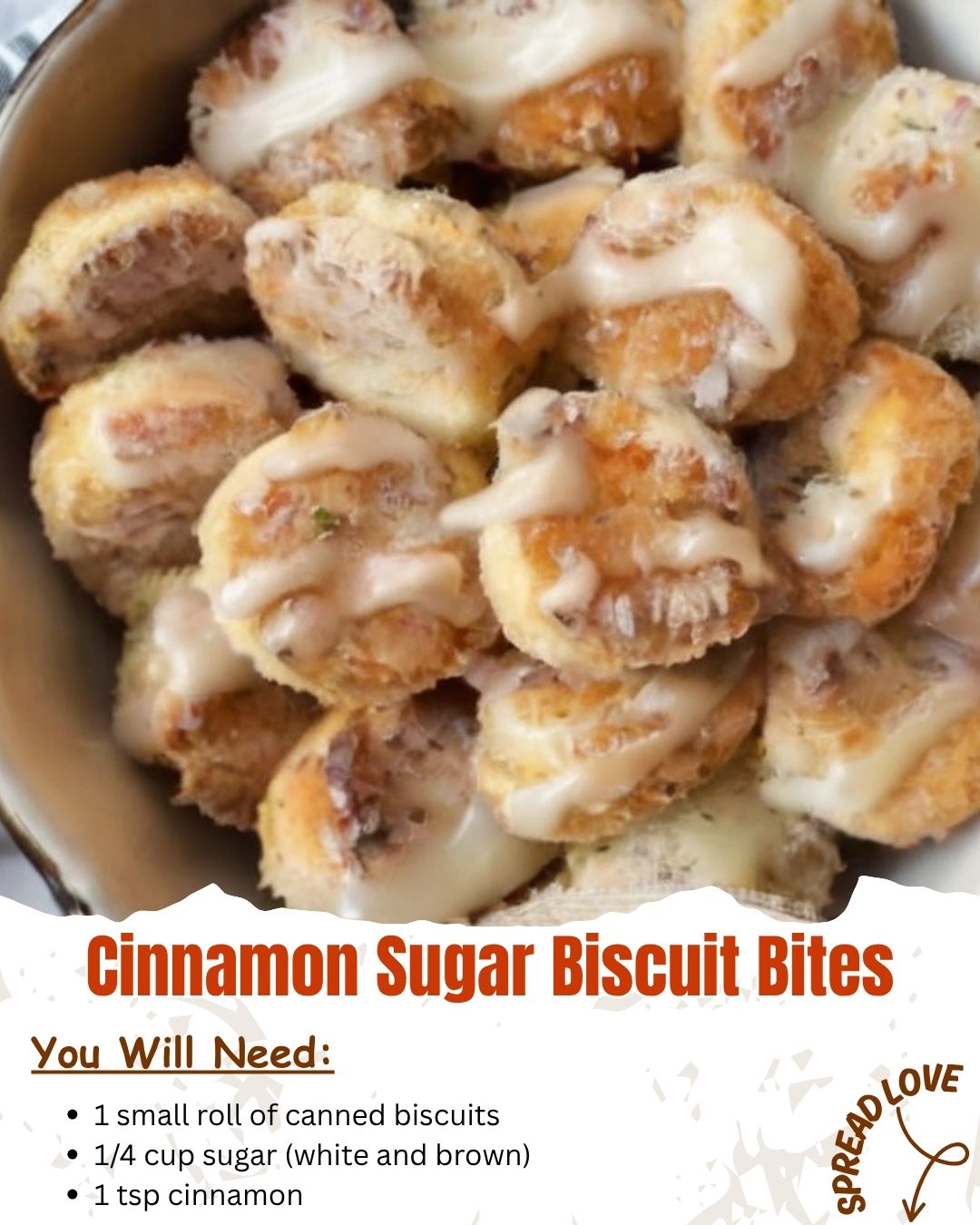 Here’s a quick, cozy, and delicious recipe for Cinnamon Sugar Biscuit Bites — warm, fluffy little nuggets coated in buttery cinnamon-sugar perfection. 🥐✨