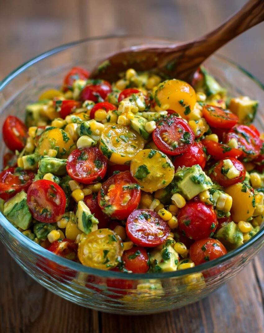 Here’s a fresh, bright, and super simple Corn, Tomato, and Avocado Salad—perfect as a side dish for grilled meats, tacos, or summer meals!