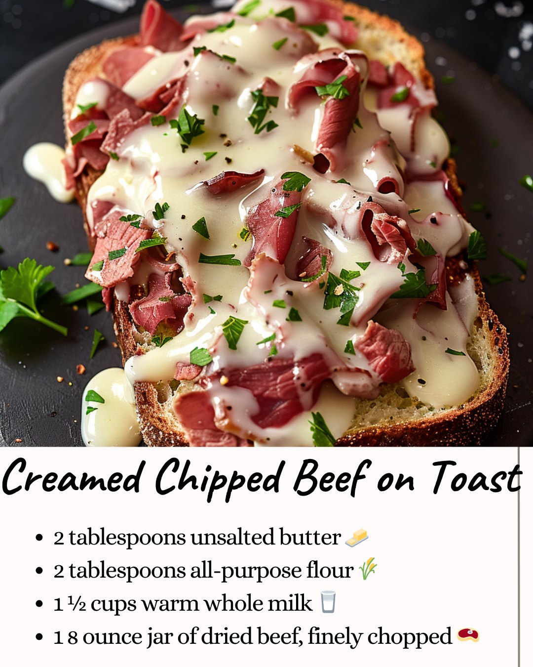 4 oz dried or salted beef, sliced thin or chopped (traditionally “chipped beef”)