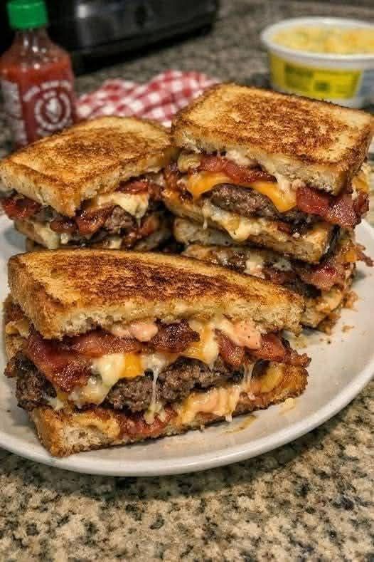 OKAY WOW 😮🔥 that name alone means business. This is a crispy, drippy, sauce-loaded grilled sandwich that eats like a smashburger and a melt had a very loud, very delicious baby.