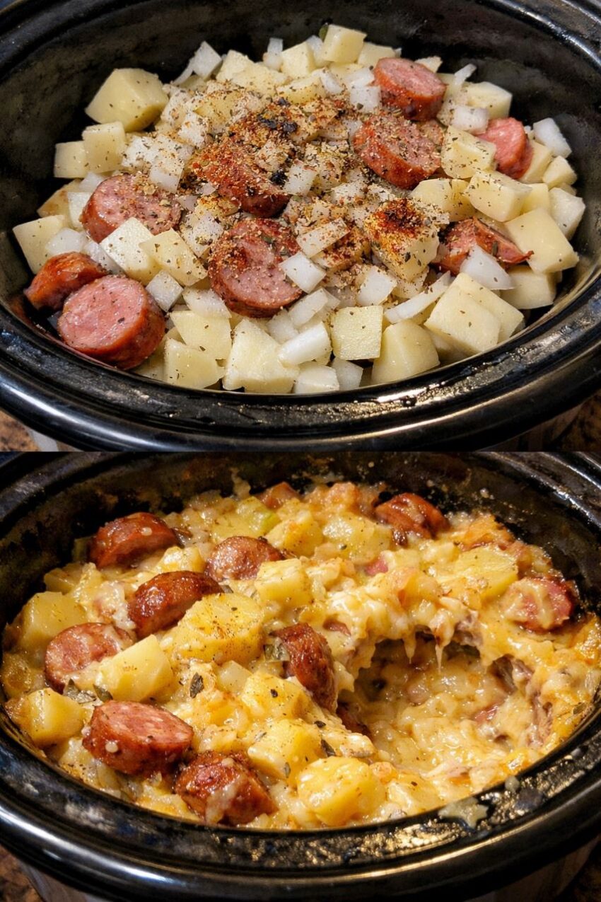 Crockpot cheesy kielbasa dinner