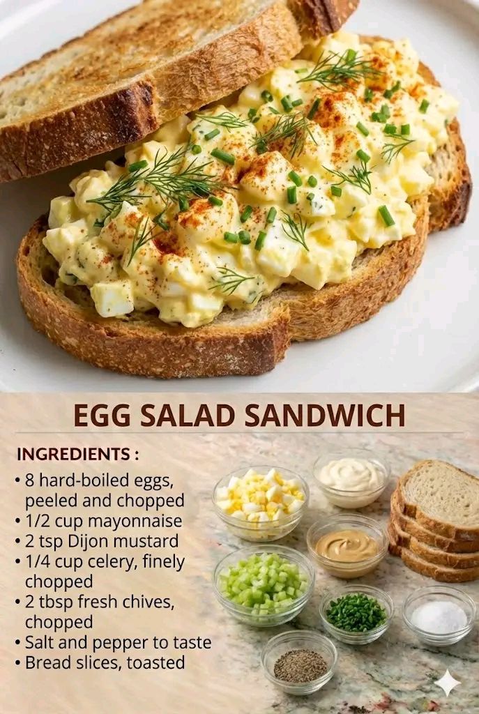 Here’s a classic, creamy egg salad sandwich recipe—simple, quick, and customizable.