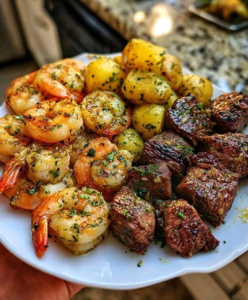Here’s a quick, skillet-style recipe for Garlic Butter Shrimp & Steak Bites with Veggie Potatoes—rich, savory, and easy to pull together.