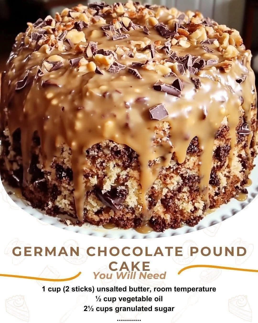 Here’s a rich and decadent German Chocolate Pound Cake recipe that combines the classic moist chocolate flavor with that iconic coconut-pecan topping.