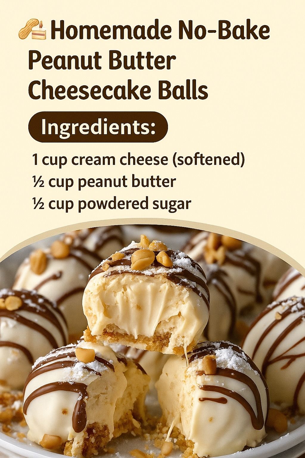 Hereβs a simple, no-bake Peanut Butter Cheesecake Balls recipe β creamy, sweet, and perfect for bite-sized desserts. π₯π°
