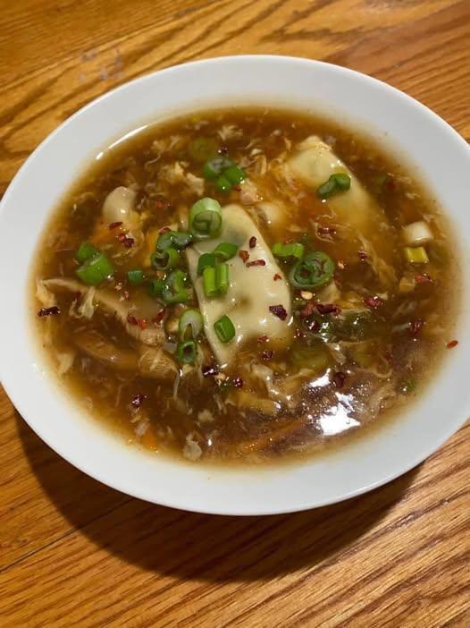 Add dumplings directly into bowls, then ladle the hot & sour soup over top.