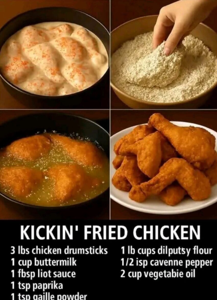 Here’s a bold, Kickin’ Fried Chicken recipe—extra crispy on the outside, juicy inside, with just the right amount of heat and flavor 🔥🍗