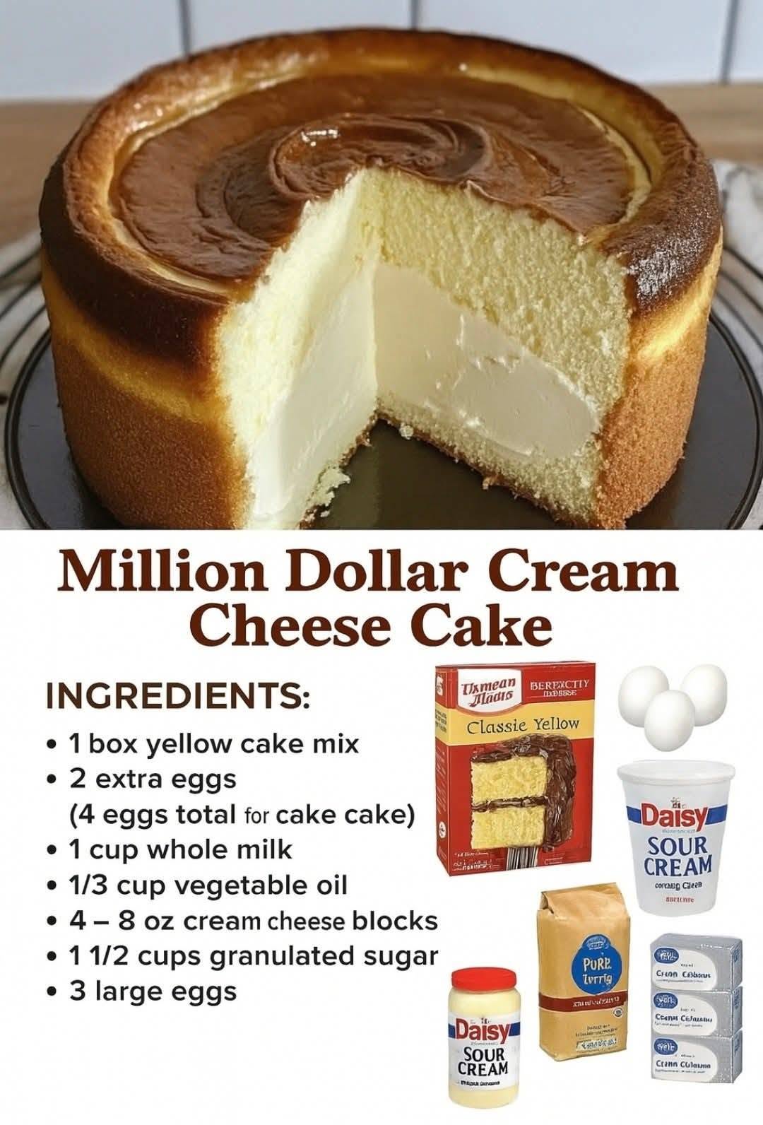 Ah, the “Million Dollar Cream Cheese Cake”! That name usually refers to a rich, decadent cake made with a creamy cream cheese base, often layered or swirled with chocolate or fruit, with a buttery crust, and topped with a luscious cream cheese frosting. It’s called “million dollar” because it’s indulgent and feels ultra-luxurious—definitely a showstopper dessert.