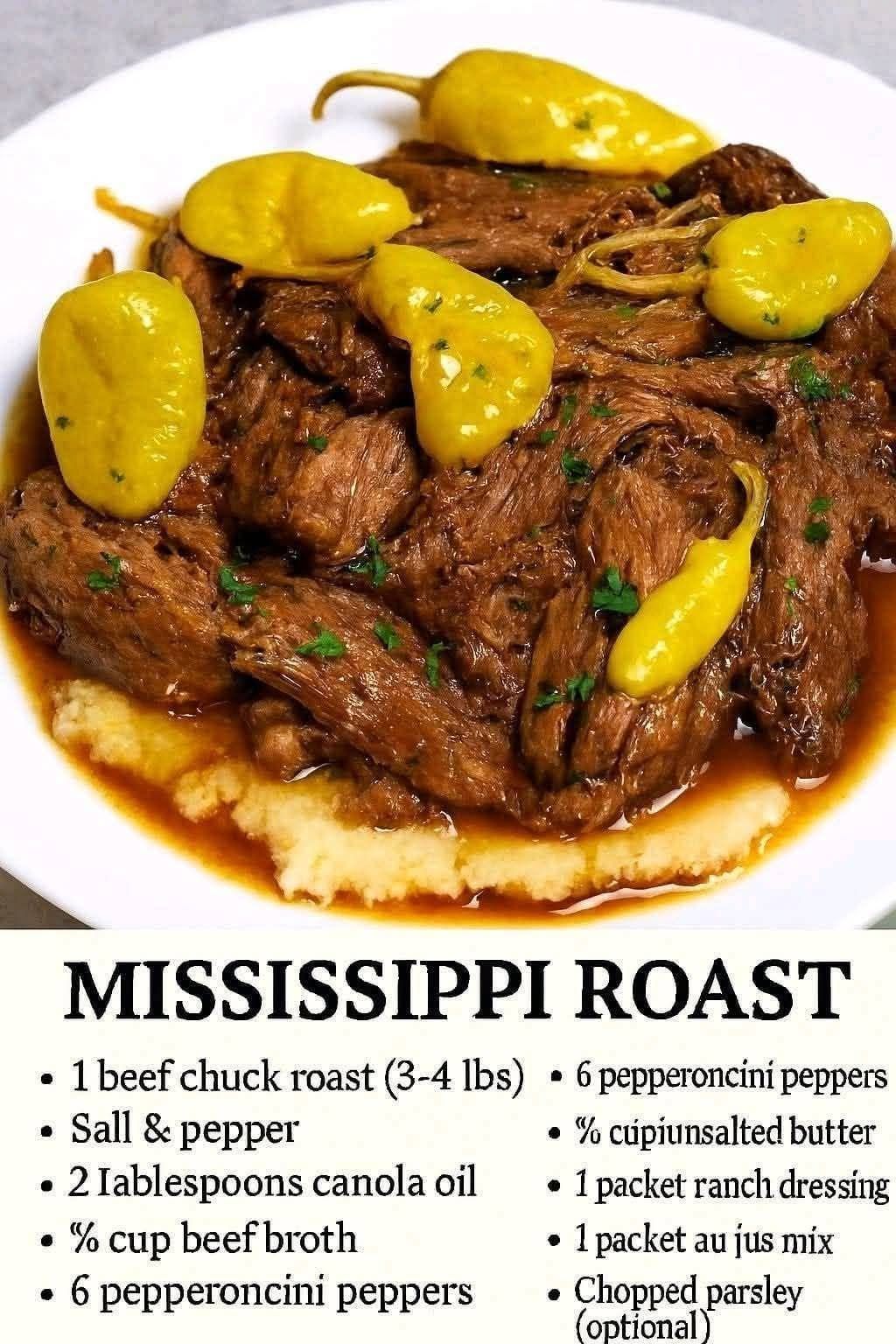 Mississippi Pot Roast is a famously simple and delicious slow-cooked beef dish that’s savory, rich, and a little tangy. It uses just a few ingredients and is perfect for cozy dinners.