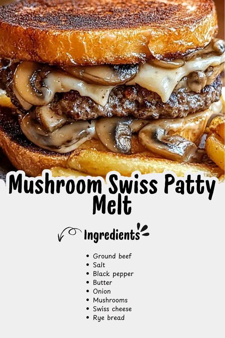 Assemble: Place patty on bread, top with Swiss, mushrooms, and onions.