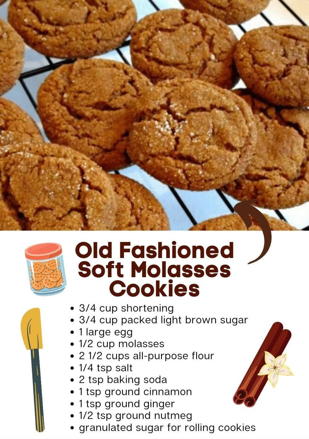 Here’s a classic Old-Fashioned Soft Molasses Cookies recipe — rich, chewy, and full of warm spice, just like grandma used to make.