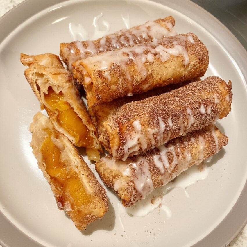 Here’s a crispy, dessert-style Peach Cobbler Egg Rolls recipe—sweet peaches, warm spices, and a crunchy shell.