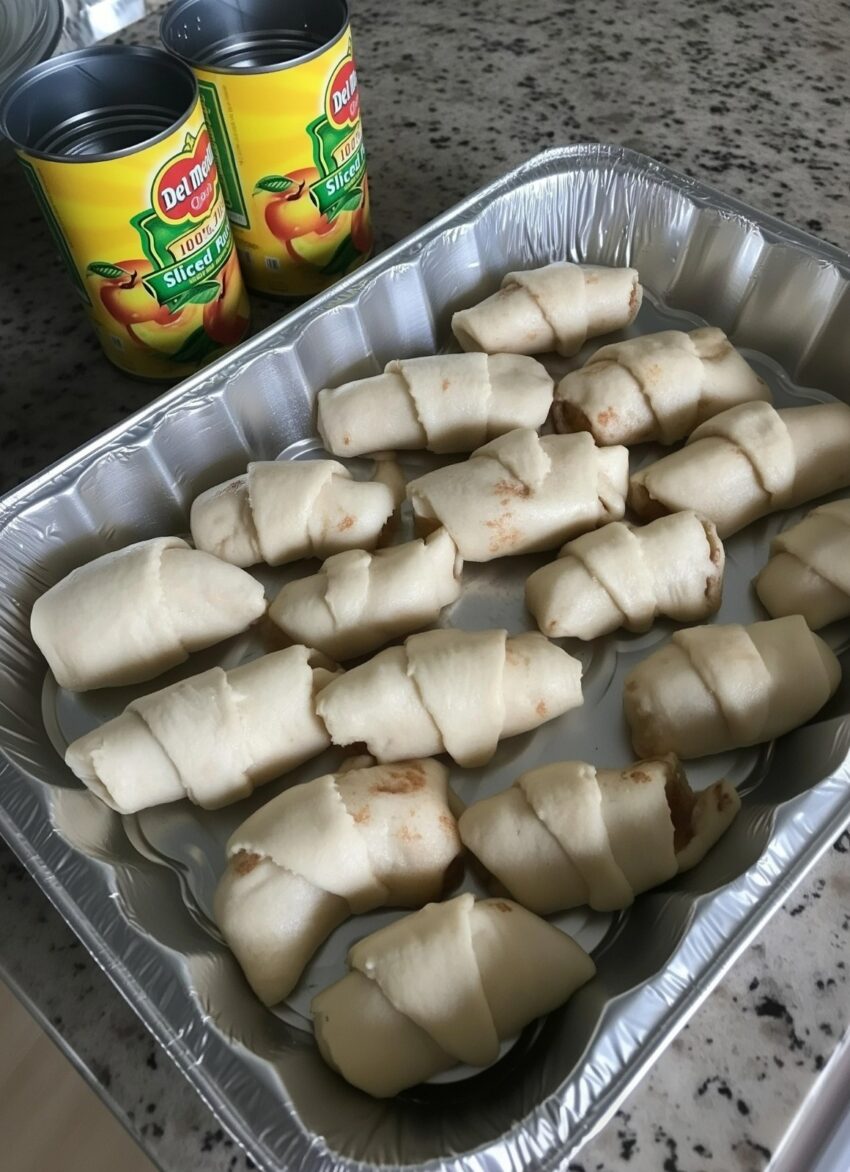 - Crescent roll version: Wrap peaches in crescent dough.
