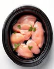 raw chicken breasts in a slow cooker with these 4 ingredients
