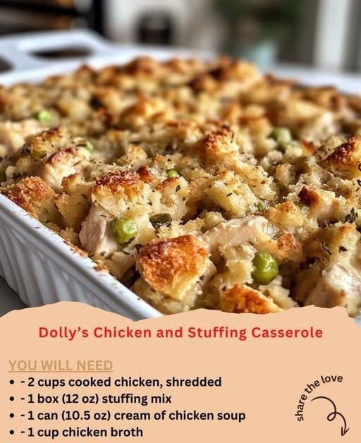 Here’s an easy, cozy Rotisserie Chicken and Stuffing Casserole 🍗🥘—perfect for a quick family dinner with minimal prep:
