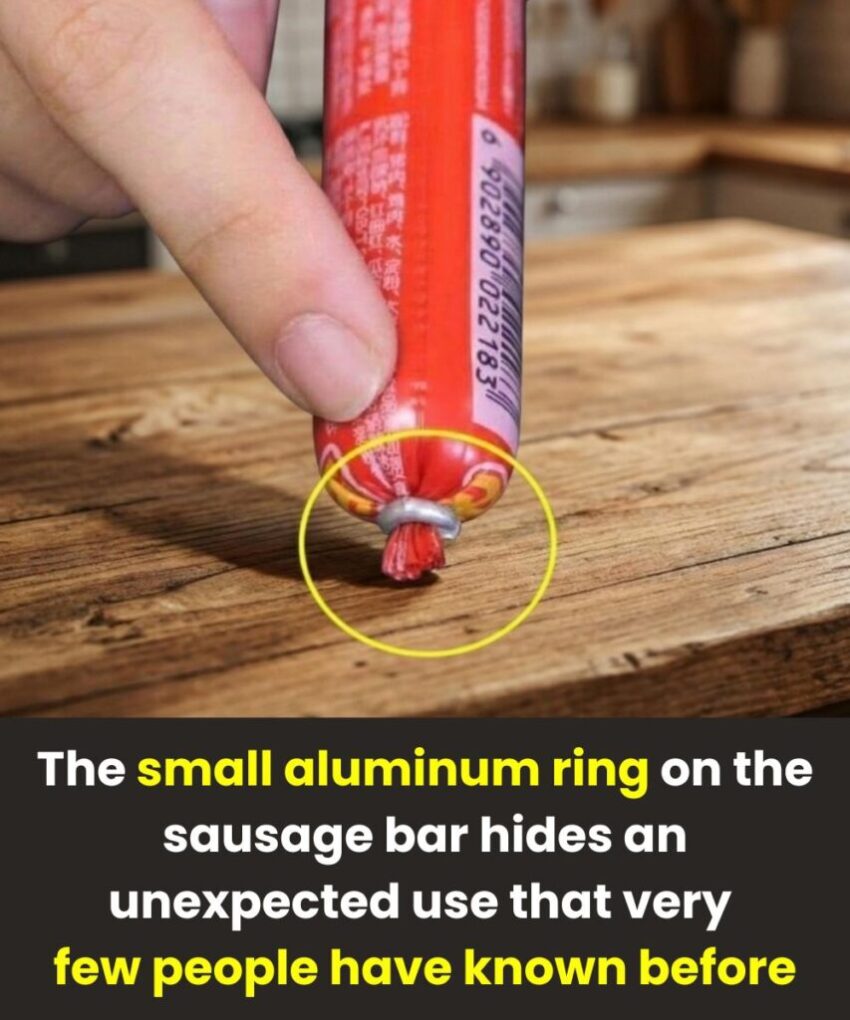 A “sausage bar with an aluminum ring” usually refers to a sausage stick (or link) that has a small metal ring clipped onto one end — a detail many people overlook but that has an important practical purpose in food production. (Likya)