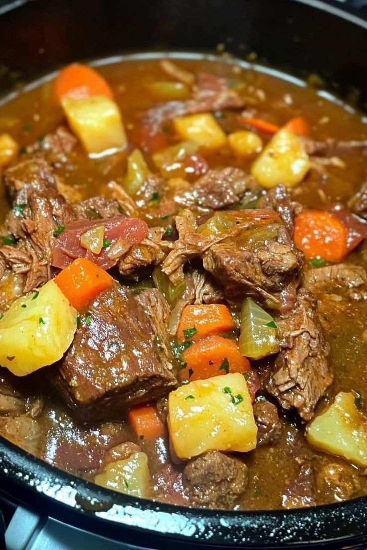 A slow cooker beef stew is a hearty dish where beef and vegetables cook slowly for several hours, becoming very tender and flavorful. Itβs similar to traditional beef stew, but made easily in a slow cooker (also called a crock pot).
