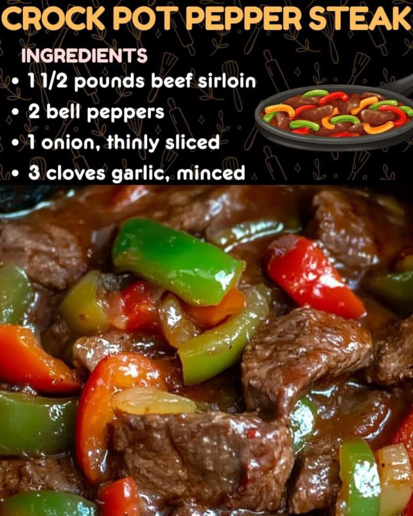 Here’s a comforting, take-out–style Slow Cooker Pepper Steak—tender beef, peppers, and a savory sauce, all with minimal prep 🥩🫑
