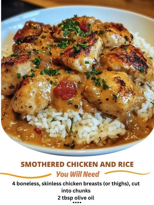 Here’s a comforting, Southern-style Smothered Chicken and Rice recipe—tender chicken in a savory gravy over fluffy rice.