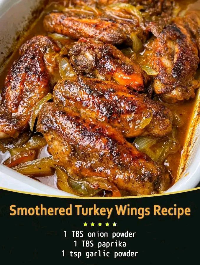 Smothered turkey wings is a classic comfort-food dish where Turkey wings are cooked slowly in a savory gravy until tender and flavorful. 🍗 It is popular in Southern cuisine and soul food cooking.