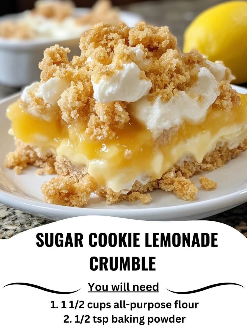 Here’s a fresh, summery dessert: Sugar Cookie Lemonade Crumble—a mix of buttery sugar cookie, tangy lemon, and sweet crumble topping 🍋🍪