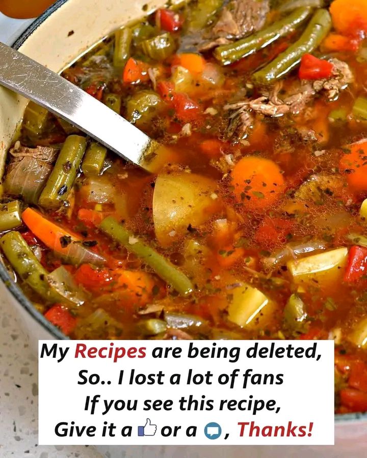 Ahhh vegetable beef soup—warm, hearty, and soul-soothing 🥣❤️. This is a classic, no-nonsense version that tastes even better the next day.
